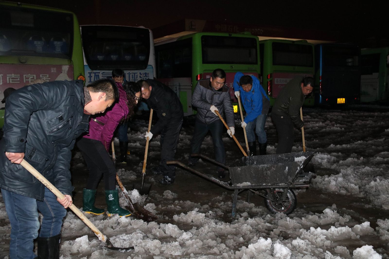 經(jīng)過(guò)一天的雪花紛飛,嚴(yán)寒和道路積雪成冰,給交通出行造成嚴(yán)重安全隱患。雪后及時(shí)清掃積雪是公司形成的一個(gè)良好習(xí)慣和作風(fēng)。為確保正常有序收銀、車輛安全回場(chǎng)停放,防止積雪結(jié)冰,當(dāng)晚,公交東部公司領(lǐng)導(dǎo)班子帶領(lǐng)管理人員冒著嚴(yán)寒、拿起鐵锨、鏟雪板、掃把等掃雪工具,清掃停車場(chǎng)站的厚厚積雪。通過(guò)此次掃雪,體現(xiàn)了公司全體干群吃苦耐勞、團(tuán)結(jié)向上的精神風(fēng)范!