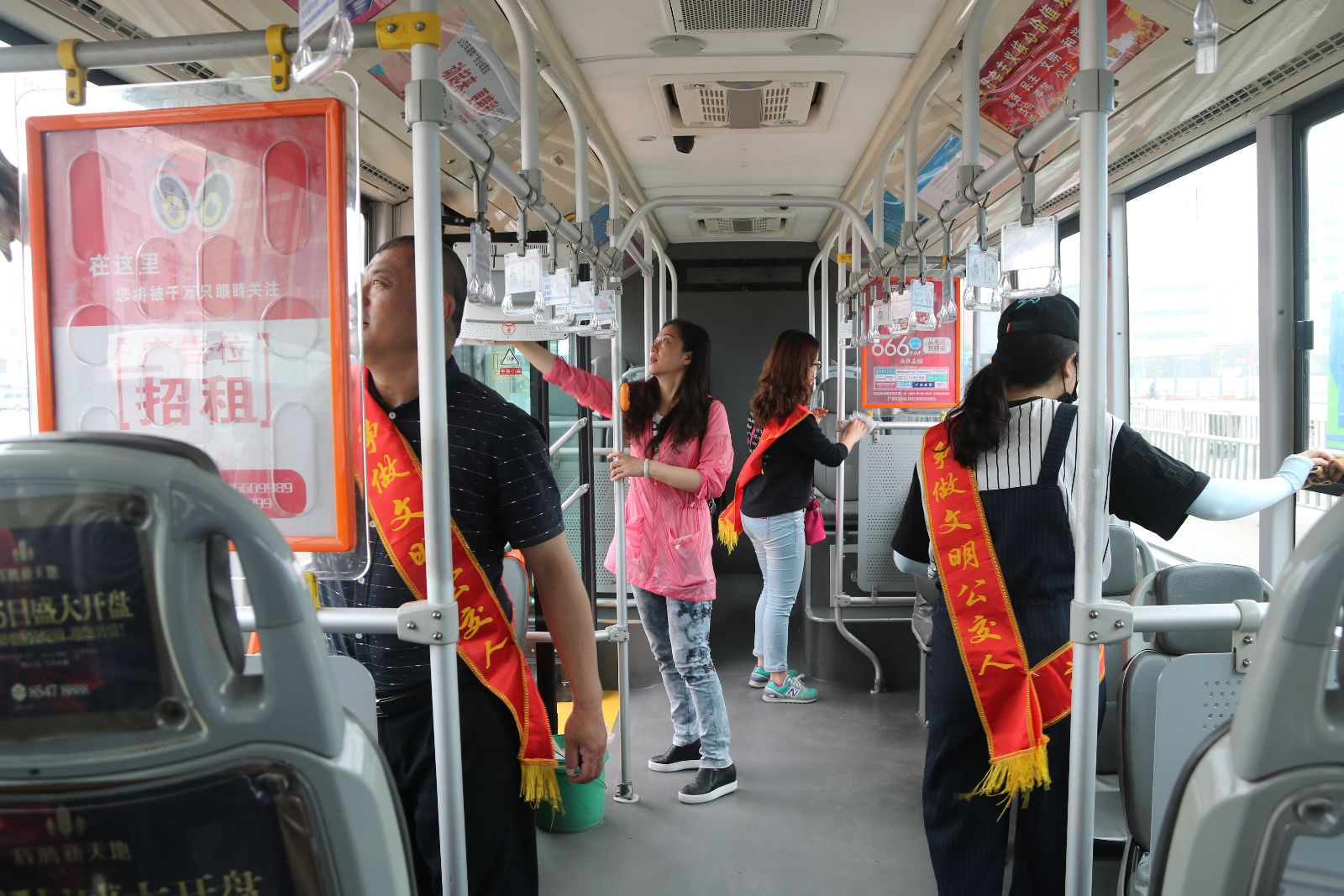根據(jù)“與雷鋒車同行,共創(chuàng)文明公交”活動(dòng)方案部署,5月31日上午,公司黨群部組織機(jī)關(guān)部室工作人員,分成四組到火車站、新華公交總站、香溢公交總站和西門等四個(gè)公交首末站點(diǎn),對進(jìn)站車輛車廂衛(wèi)生一趟一掃一抹。參加活動(dòng)的機(jī)關(guān)管理人員,逐一打掃進(jìn)站車輛車廂衛(wèi)生,擦洗座位、窗裙、玻璃和扶手,為乘客乘車出行提供良好的乘車環(huán)境。
