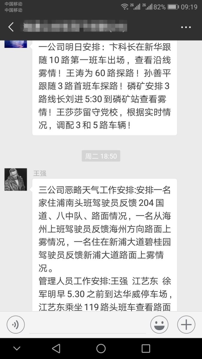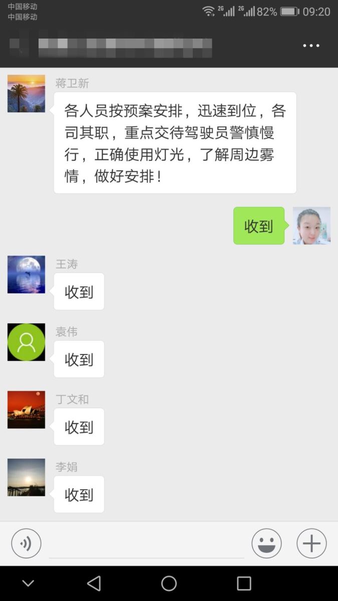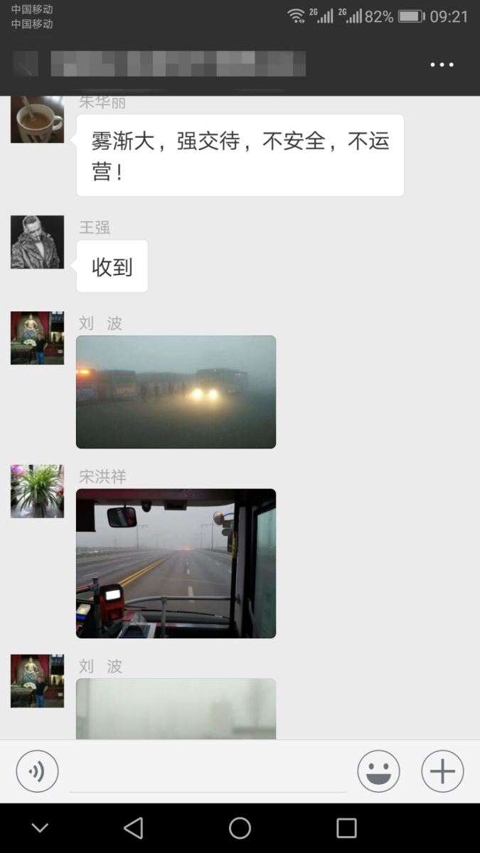 11月27日凌晨,大霧如期而至,公交集團海通公交公司微信群早已信息不斷,管理人員全部提前到崗,進入“備戰(zhàn)狀態(tài)”。朱華麗強調(diào):一是各分公司要加強工作聯(lián)動性,做到路況信息資源共享。二是期間出場車輛定要加強安全交待,做到不安全,不生產(chǎn)。三是在天氣條件轉(zhuǎn)好的情況下也不能放松安全這根弦,要全方位提升駕駛員安全預防意識。四是大霧惡劣天氣從11月27日至11月30日,全體管理人員要做好打“持久戰(zhàn)”的準備,切實做好冬季惡劣天氣安全行車無事故工作。
